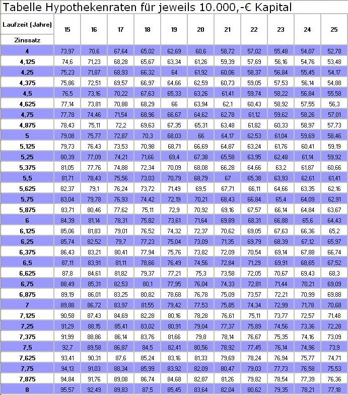Die Hypothekenraten beinhalten Zins